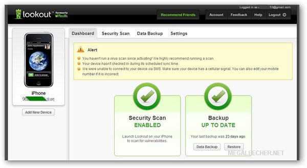 Lookout supports a wide-range of devices including Windows Mobile, iPhone (Private Beta), Android, Symbian, Balckberry, Palm, Samsung, Sony-Erricson and many other offering users complete peace of mind with inclusion of an advanced anti-virus, firewall, and intrusion prevention technologies; allowing backup of contacts, photos, video, e-mail, and text messages to the cloud, and in-case your device gets lost or stolen lets you locate your device (needs GPS), sound an alarm or even wipe your personal information remotely from the web.