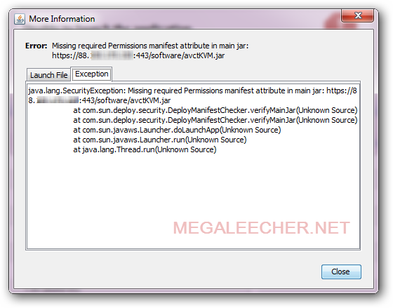 When facing an "Java Security Permission Error" as shown below :